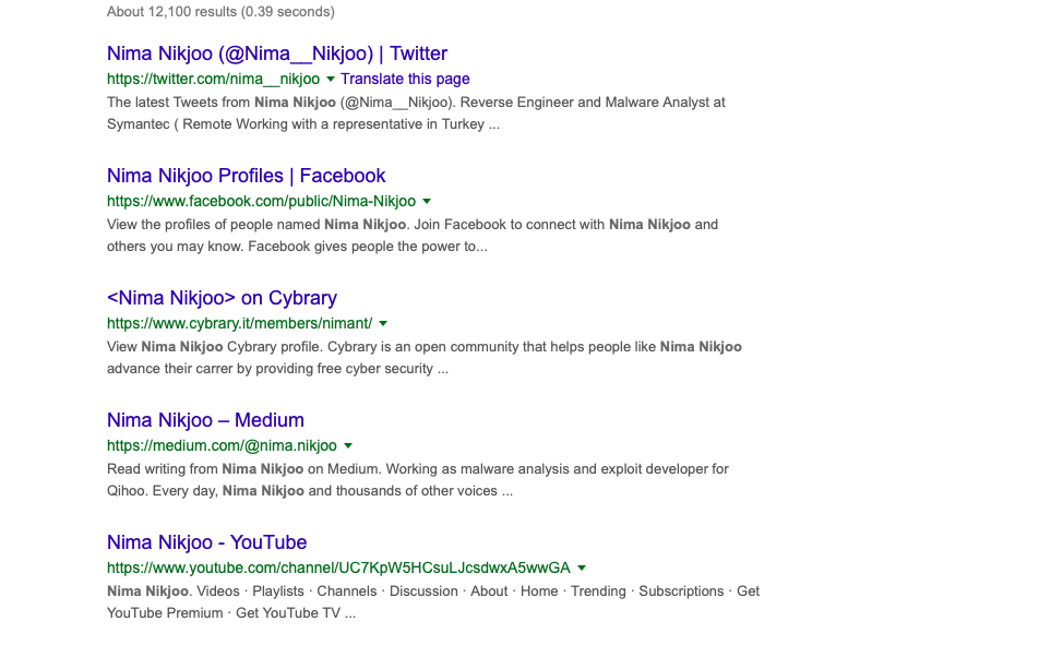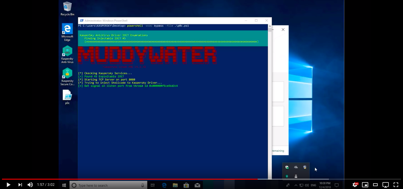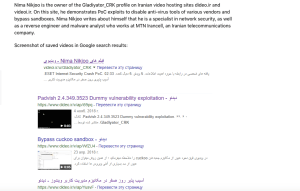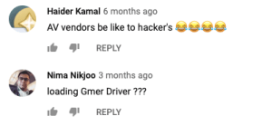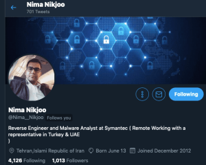 This shows a PoC bypassing Kaspersky Anti-Virus with ascii of MUDDYWATER. Which is pretty interesting since the Youtube account is also named muddy water and when we scroll down we see a comment with someone named “Nima Nikjoo”.